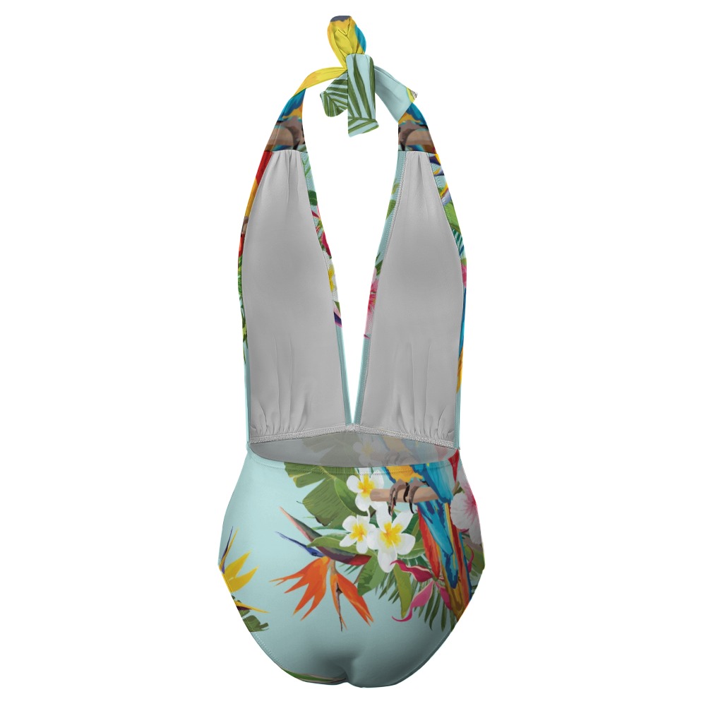 The Aria Parrot Halter One-Piece is designed to deliver a striking blend of elegance, comfort, and confidence, offering a sleek, sculpting silhouette that enhances your natural curves while providing a secure and supportive fit for all-day wear. With its soft, smooth feel and thoughtfully crafted construction, this swimsuit offers a balanced stretch that shapes the body while allowing effortless movement, making it ideal for both relaxing and active moments in and around the water. The adjustable halter neckline and back straps allow for a customized fit that complements a variety of body shapes, while the deep v design adds a bold, feminine touch that highlights your figure with refined allure. Its lightweight, breathable, and quick drying nature ensures lasting comfort, helping you stay fresh and at ease whether you are swimming, sunbathing, or transitioning between activities. Perfect for beach days, poolside lounging, honeymoons, spa visits, water sports, or summer gatherings, this one piece is designed to make you feel confident, stylish, and effortlessly radiant. To maintain its quality, it can be hand washed or machine washed, avoid soaking for long periods, do not bleach, and keep the washing temperature below 45 degrees.