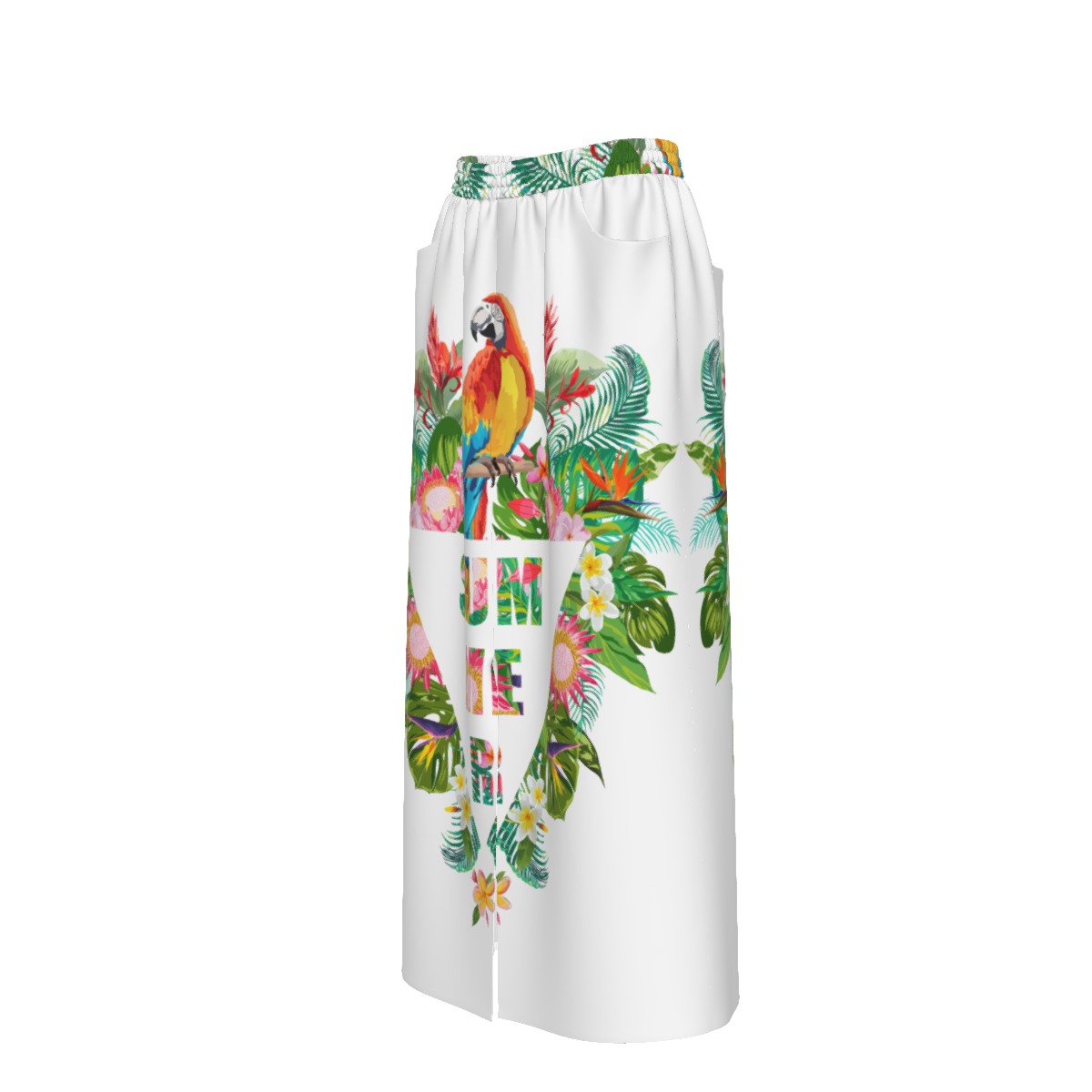 The Eros Parrot Front Mid Slit Skirt offers a relaxed yet stylish silhouette with its front center slit that adds movement and subtle flair, crafted from pure cotton canvas made of natural fiber that feels soft, breathable, and durable with a strong textured surface that enhances its refined look, complemented by a regular fit, two convenient pockets, and stitching that automatically matches the pattern in either black or white for a clean finish, and it remains easy to care for with instructions to machine wash cold with similar colors, avoid bleach, tumble dry on low heat, and refrain from ironing or dry cleaning to maintain its quality and shape.